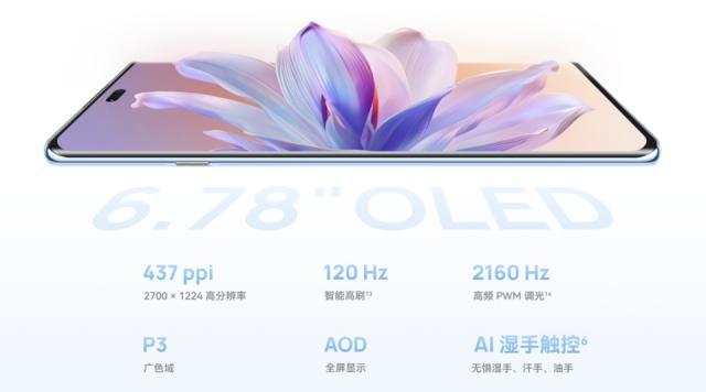 宽度为 6.78 英尺,支持 1.5K 分辨率,120Hz 高刷、2160Hz 高频 PWM 变光,屏幕指纹,AI 湿手触摸。