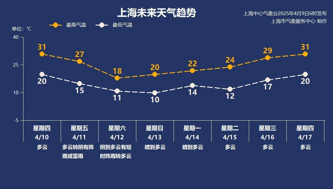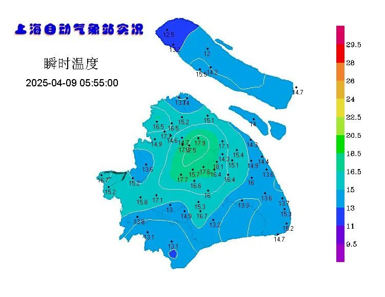 今天(4月9日),云系统增多,多云到阴,部分地区有短期小雨,不影响出行或升温。早上市区气温在17℃以上,郊区最低气温在11℃以上。~17℃。估计中午最高温度还是可以升到30℃周围,昼夜温差大,还是要注意穿衣。偏南风3~4级,中午前后转偏西风4级~5级阵风6级。90%的相对湿度~35%。