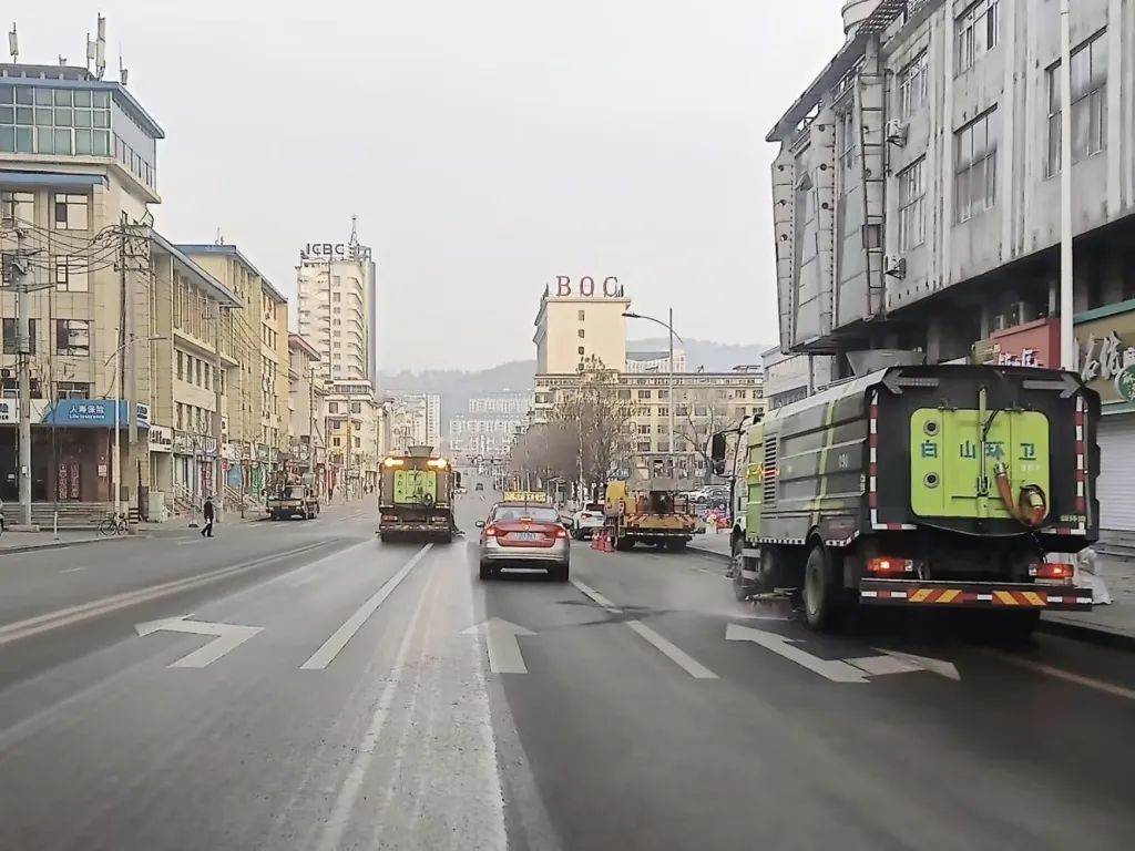 ●近日,白山市城管执法局环卫中心组织开展了春季路面洗涤工作。