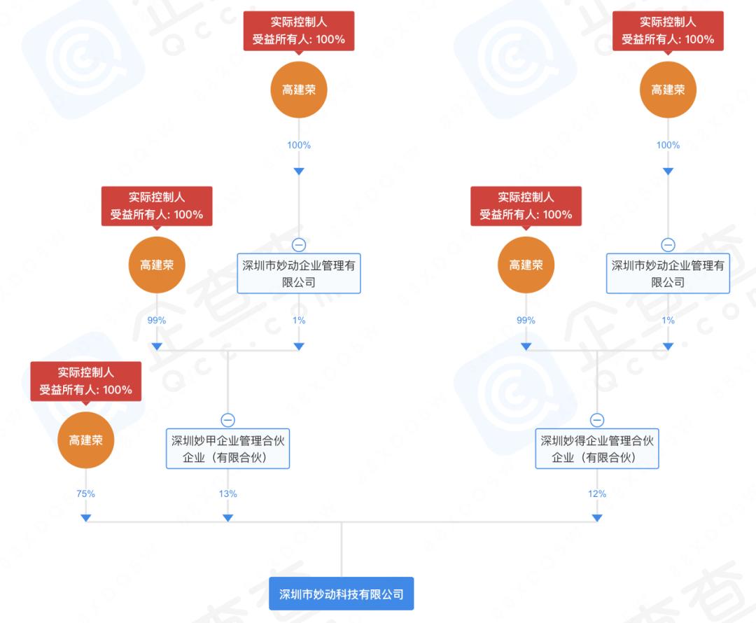 根据公开的工商信息,妙动科技实际上是在今年1月成立的,此时杨硕还没有辞职,目前妙动科技的实际控制人名称是高建荣。