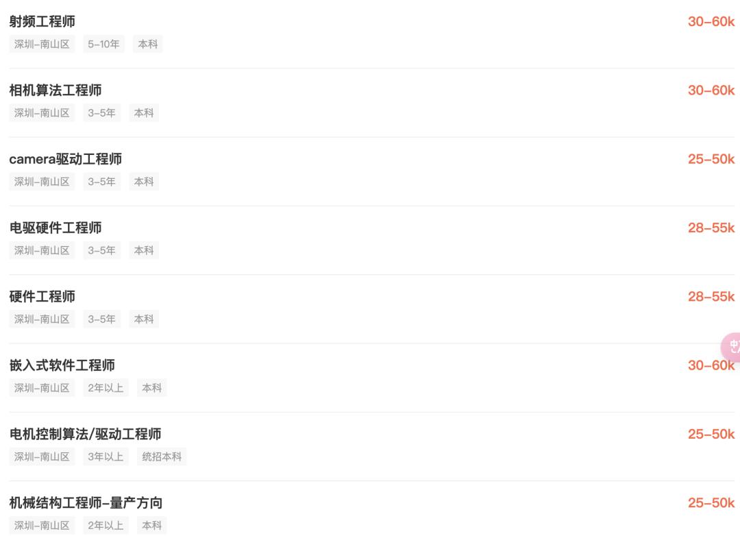 从招聘网站可以看出,妙动目前正在招聘多个技术岗位。技术栈包括嵌入式、电控电驱算法、相机算法等。工作地点位于深圳南山,也是DJI总部所在地。