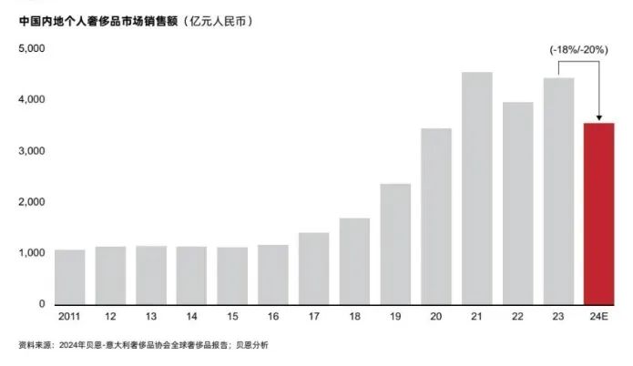此外,2024年mainlandChina高端消费市场规模同比下降2%至1.63万亿元,其中个人奢侈品市场销售预计下降18%-20%。