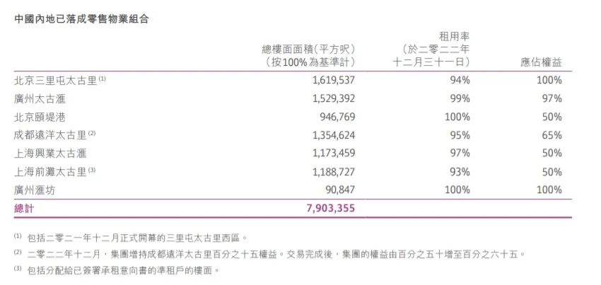 到2022年,三里屯太古里零售额同比下降26%。这种下降幅度远远超过广州太古汇和成都远洋太古里,后两者各自下降11%和15%,其中,三里屯太古中94%的出租率也低于广州太古汇99%。