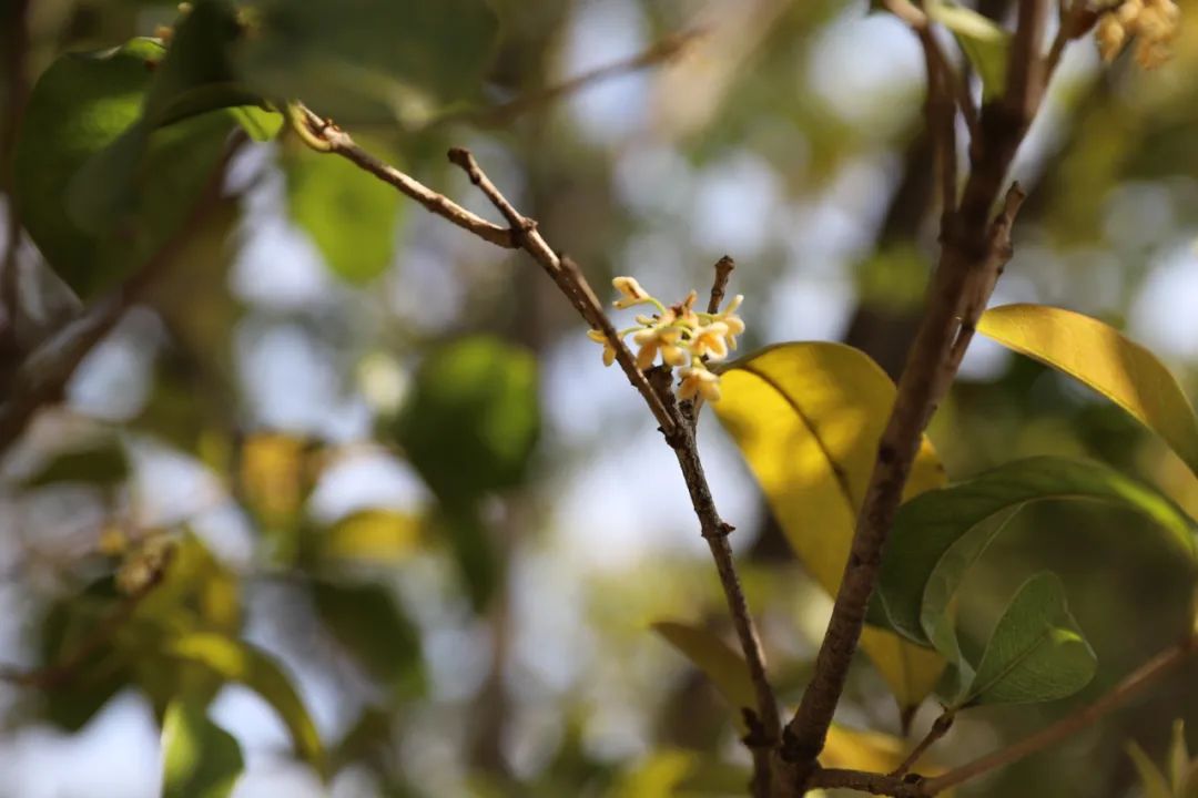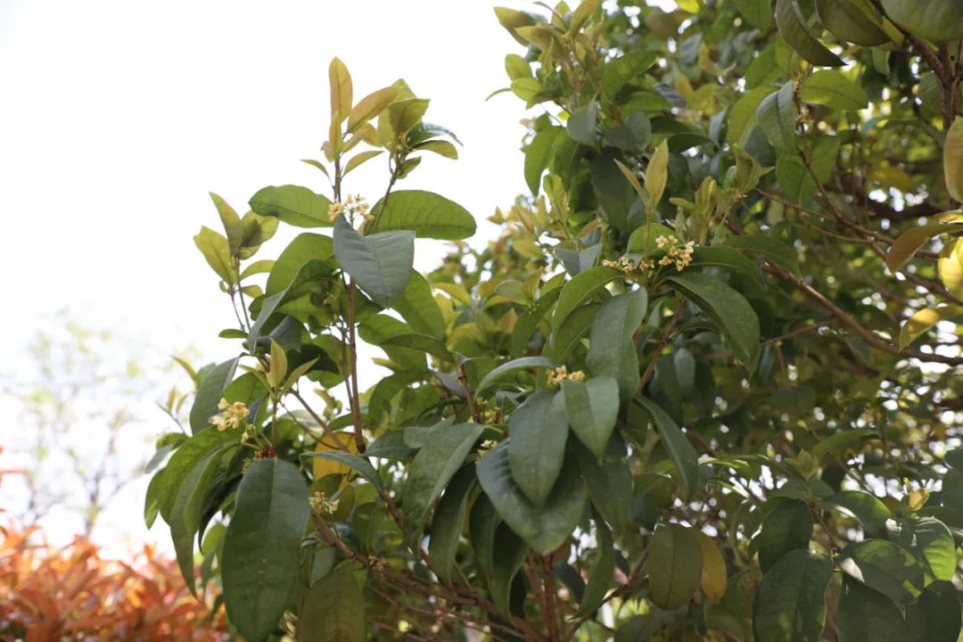 据了解,日香桂的花朵娇小玲珑,簇生在叶柄或枝条上,呈伞状花序。颜色以黄色为主,有淡白色和四片花瓣,质地厚实有光泽。此外,日香桂的花香浓郁,即使在非花期,它的枝叶也散发出独特的香味。值得一提的是,它具有很强的抗污染能力,可以吸收二氧化硫、氢气等有害气体,净化空气。