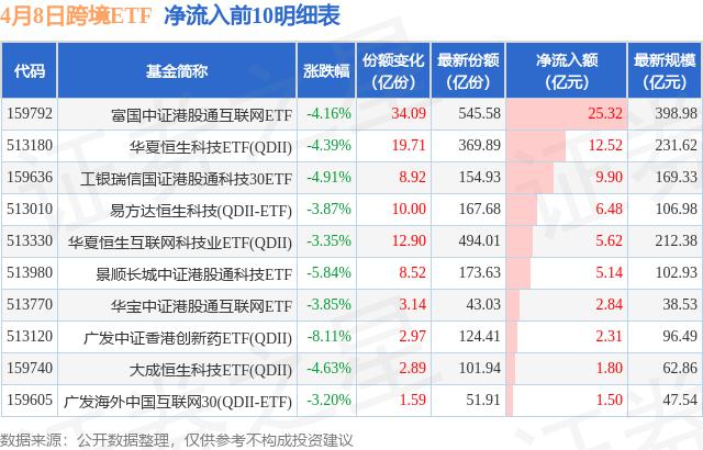 四月八日,跨境ETF净流入86.69亿元