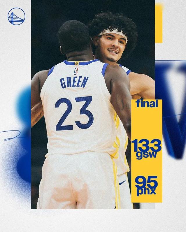 勇士 133-95 击败太阳。在这场比赛中,杜兰特因为受伤而没有出征,比尔仍拉胯,出征 26 分钟仅砍下 7 分,布克本人就是 17 投 7 在中间,砍下了全队最高的太阳。 21 得分。在输掉这场比赛之后,太阳基本上已经完全失去了附加赛的机会。也就是说,杜兰特肯定不会回来。
