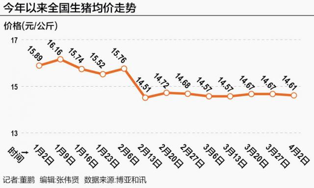 根据国家统计局公布的旬度数据,2025年 年初生猪(外三元)价格保持在原地 16.1 元 /kg,到 3 月底的时候已经跌到了 14.7 元 /kg。
