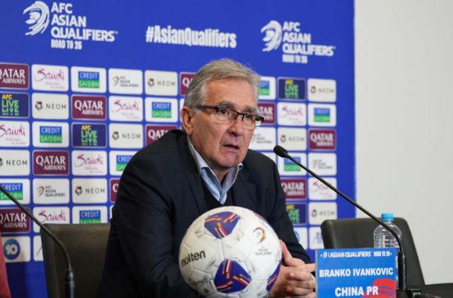 △在赛后的新华社,中国队主教练伊万科维奇。