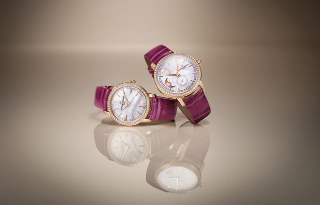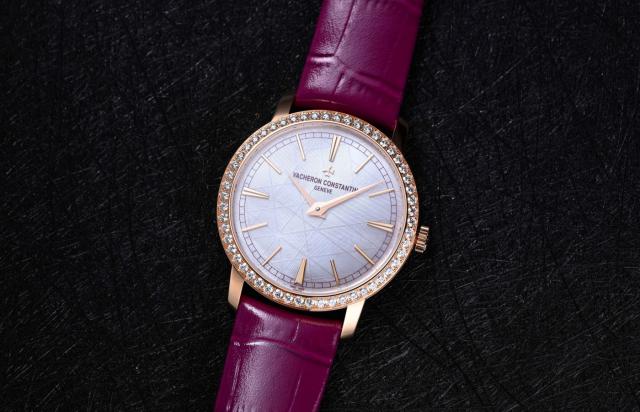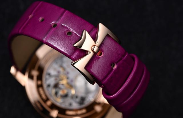 另外一个女表是 Traditionnelle 传袭系列手动上链手表,选择表径较小的手表。 33 mm镶钻粉色金表壳,整个盘面更加简约大气,通过马耳他十字元素装饰盘面,独特的贝母光泽凸显女性气质。内部搭载仅 2.6 毫米的 1440/270 品牌自制机芯,同样经过特殊图案的精细装饰。作为品牌 270 周年限量款,这两款女性手表只限量发行。 270 枚。