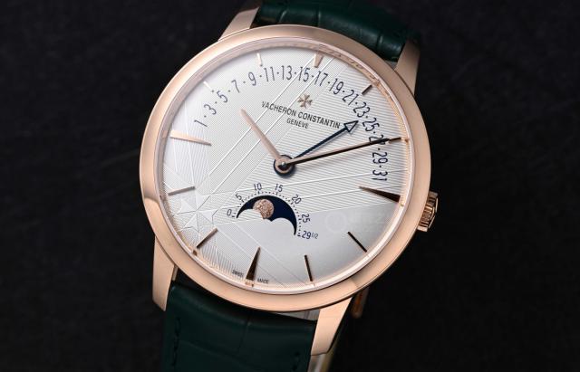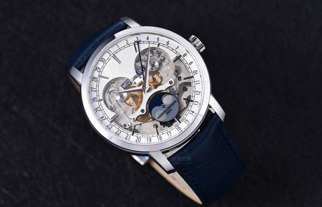 江诗丹顿最具标志性的日期逆跳功能不仅在上半张表盘中加入,而且用机器雕刻江诗丹顿。 270 特殊的纪念日,以马耳他十字灵感的独特线条,更是在 3 点位月盘,5 平闰年点位显示,9 点位周盘等部分采用镂空处理。透过镂空的盘面可以看到机芯夹板装饰的垂直纹理,而且还有精美的珍珠纹打磨。6 月相窗口点位组合模拟月球表面设计,每个点位 122 每年只需校准一次,直到 2100 万年历功能不需要任何人工调整,密切相关。