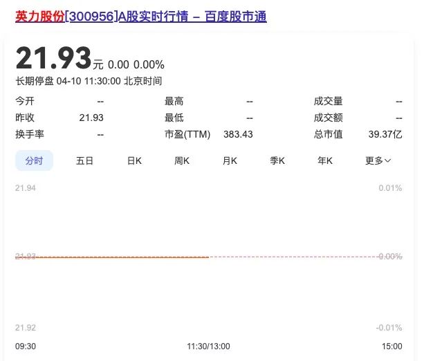 截至4月9日收盘,公司股价为每股21.93元,总市值为39.37亿元。