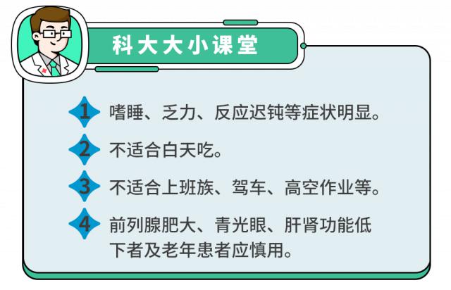 而且副作用大,中枢神经系统镇静、抗胆碱等副作用强,吃完容易犯困,不建议儿童服用,成人也不能长期食用。