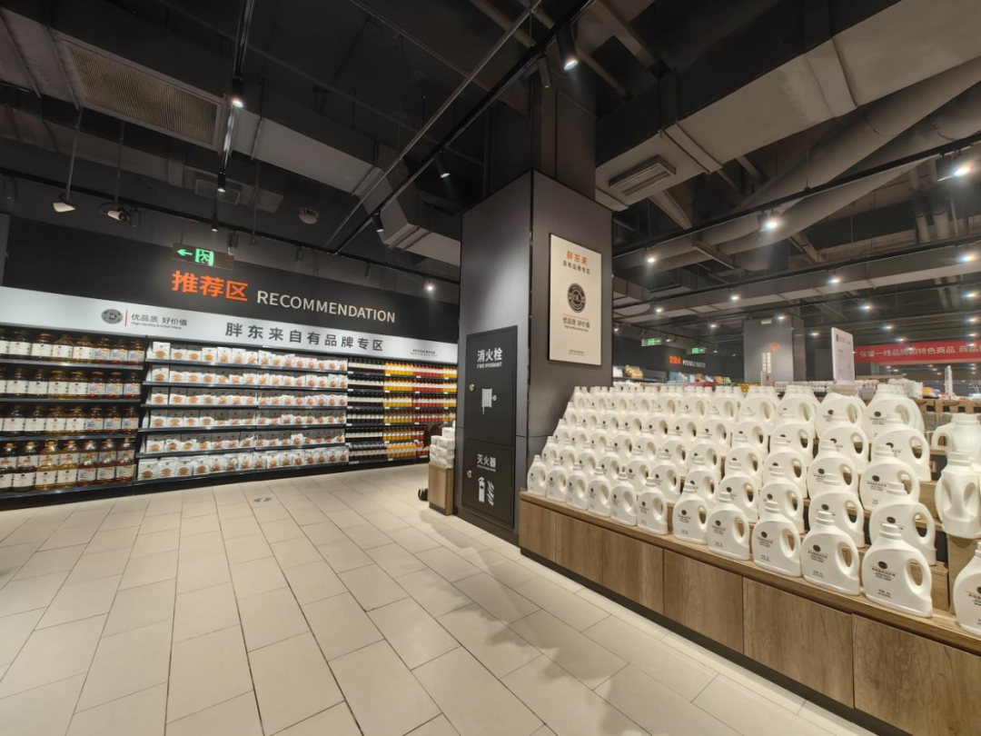 食品方面,超市设立了来自胖东的品牌区,包括DL自酿啤酒、DL桃汁、DL果汁、DL芒果混合果汁、DL多效洗衣液、DL饮用天然矿泉水、DL自由爱(白酒)、DL酸奶、燕麦片、DL榨取一级花生油、DL多功能洗脸软毛巾等产品进行集中展示,让武汉市民在家门口就能买到胖东来的优质产品。而且开门后,胖东来商品也很快被顾客抢购。