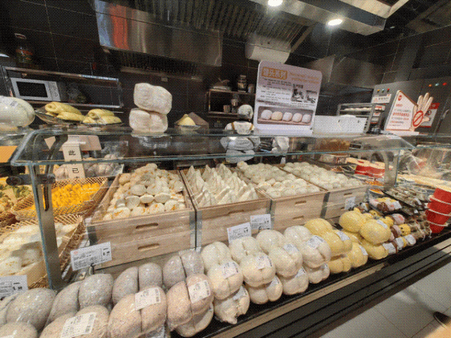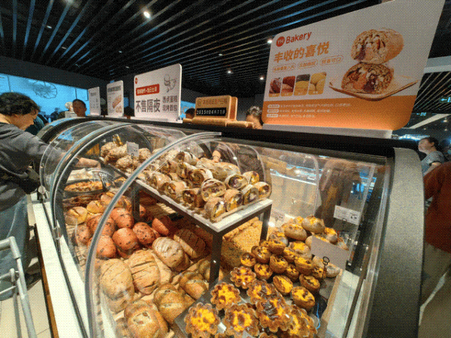 烘焙区主要推广健康和场景消费的概念。主要推广产品“丰收的喜悦”欧式包装,嵌入南瓜、紫薯、红薯、栗子等多种果蔬,营养丰富;龙井桑葚大福、四拼瑞士卷等郊游系春季有限,非常受欢迎。特别令人敬佩的是,烘焙区全线产品禁用脱氢乙酸钠、代可可脂等不健康添加剂,将健康理念融入到每一款产品中。