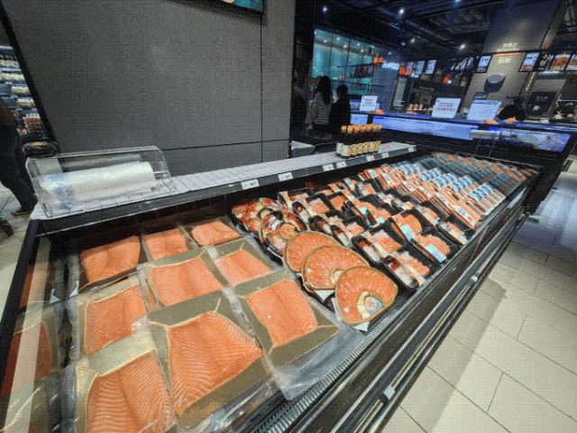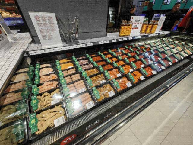 水果区,番石榴、释迦、人参果、嘉宝果等小众网络名人水果,拓宽了消费者的早期采用边界;果切区紧跟季节潮流,推出季节性水果拼盘,仔细标注甜食顺序。超市还引进了一系列果汁、椰奶果冻等产品,丰富了味蕾体验;为了保证新鲜度,超市严格遵守新鲜度承诺,草莓等嫩品“当天清空”,果切4小时八折,8小时下架。让顾客每一口都吃得新鲜,放心。