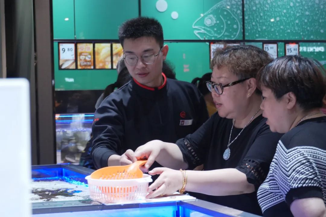 在调料等柜台,店内专门增加了放大镜,极大地方便了老年客户查看产品信息;对于散装食品,“一斤左右”标注清楚,有效解决了顾客在选择时的焦虑问题。在海鲜柜台,除了提供周到的清洁服务外,还可以为顾客购买的海鲜提供氧气,保证海鲜的新鲜度;肉禽柜为顾客提供切丝、去骨、绞肉等免费服务,为顾客节省时间和精力。此外,店内还精心设置了专用鞋套、试穿鞋凳、切鱼间、易碎品包装处、海鲜包装加冰处等。,充分满足顾客在购物过程中的各种需求。