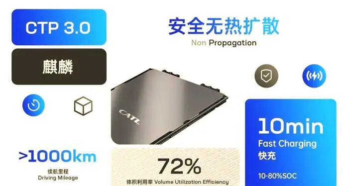 近年来,宁德时代推广的麒麟电池被官方宣传使用。CTP 3.0技术(第三代无模组技术)CTC设计(电池与底盘融为一体),借助底盘的高强钢加强电池组的抗冲击能力;碰撞时0.01秒断开高压电,0.2秒释放残留电能,防止热扩散。据报道,最高可承受每小时120公里的碰撞。