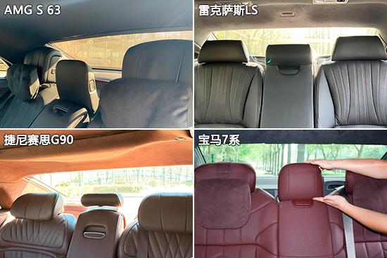 在车内舒适性方面,四款车均采用 5 座椅布局,每个座椅都配备了头枕,后排两侧的头枕可以给驾驶员和乘客足够的头部支撑,头枕更舒适。可惜除了捷尼赛思, G90 另外,三款车型的后排中央头枕也不支持上下调节。