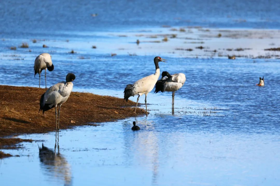 近年来,昭通市、昭阳区积极实施湿地保护与恢复、湿地环境效益补偿、食品来源基地建设等管护措施。以黑颈鹤及其栖居的亚高山沼泽草原湿地为重点保护对象,不断改善保护区生态环境,日益丰富生物多样性,促进保护区生态环境的稳步改善,为黑颈鹤等候鸟提供了广阔的栖息地,确保他们安全过冬。