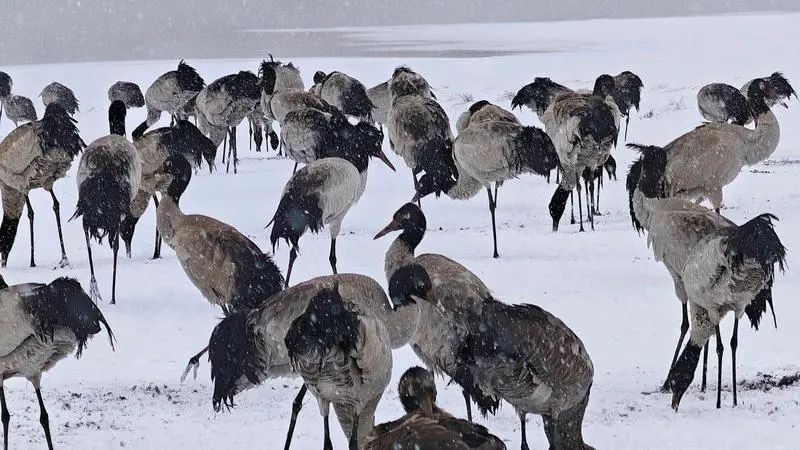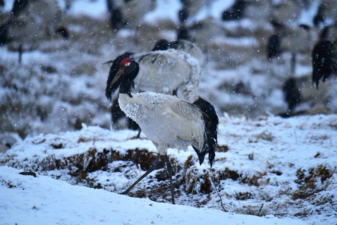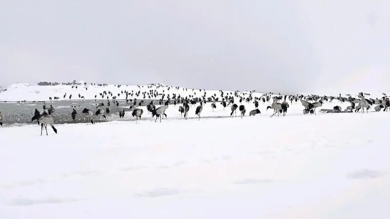随着天气越来越暖和,云南省昭通市大山包的冬季黑颈鹤已经大规模向北移动,飞往青海、四川等地繁衍生息。据大山包黑颈鹤国家自然保护区管护局统计,截至4月9日,由于天气波动,已有150多只黑颈鹤停留在大山包里休息,工作人员已增加喂食频率。