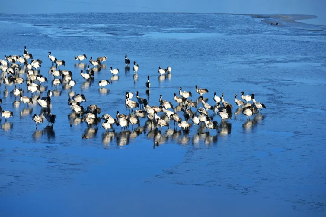 如今,山包已经成为黑颈鹤、赤麻鸭、夜鹭等珍稀候鸟过冬的理想家园,其中黑颈鹤数量稳步增长,从1990年的200多只发展到2025年的2000多只。今年3月中旬,山包保护区工作人员在海子监测时,意外拍摄了一只国家一级保护动物。这是自2016年在云南山包保护区监测到的。九年后又发现了它的踪迹。对栖息地的要求极其严格,需要清澈的水域,丰富的鱼群和零影响的环境。这种“生态试纸”级别的敏感特征使其成为衡量湿地健康的核心指标物种。