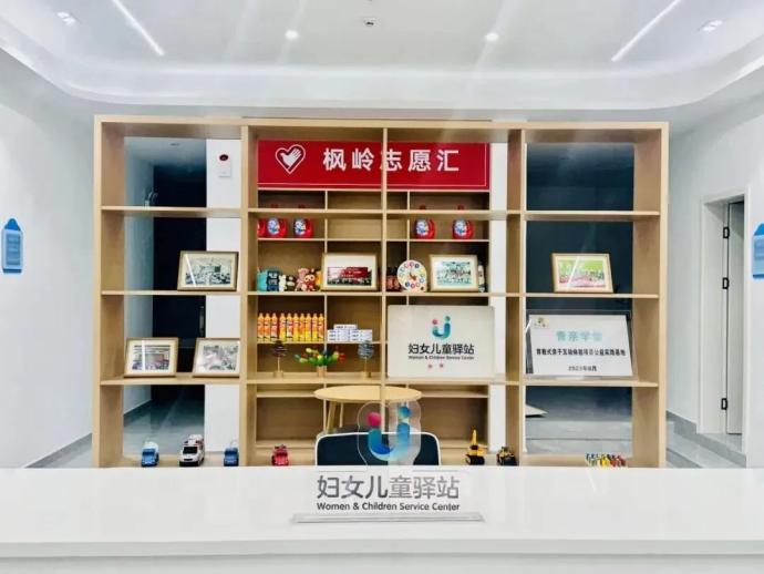 “55”枫岭社区妇女儿童驿站 X“以服务模式为核心,整合教育培训、权益保障、创业帮扶等六大板块,打造亲子书吧、儿童快乐公园、共富车间、女性直播间等六大特色功能区,为居民提供“一站式”活动阵地。