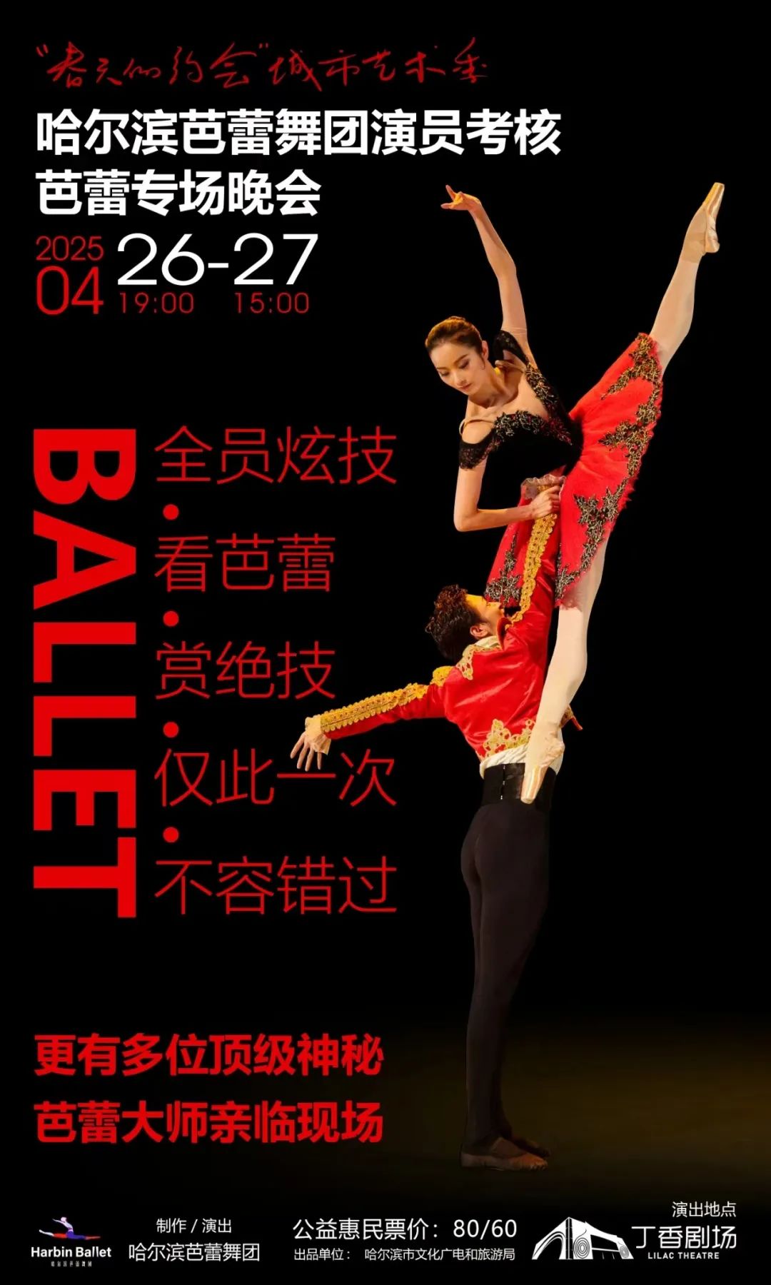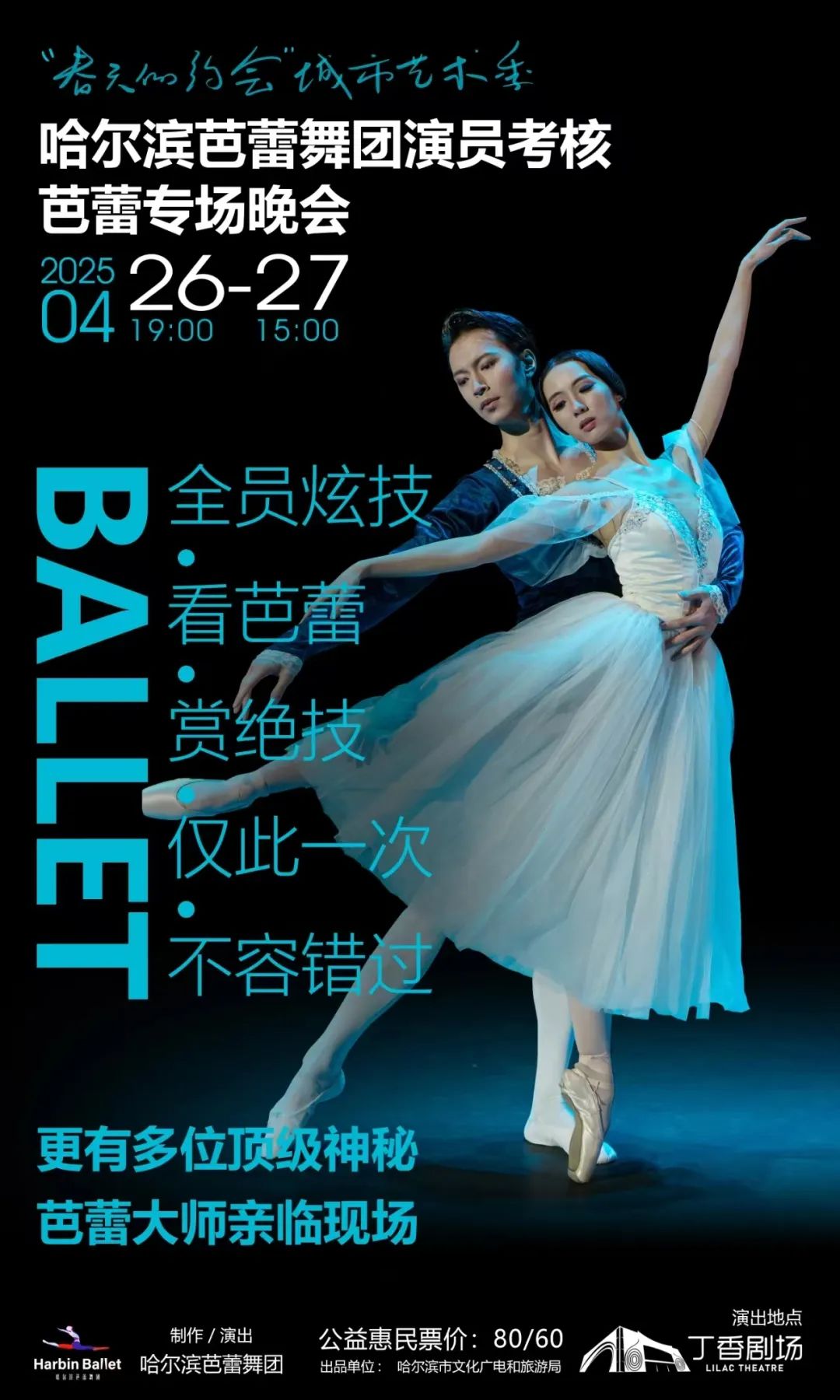 四月二十六日、二十七日,哈尔滨芭蕾舞团将为丁香剧场带来“春日约会”城市艺术季——哈尔滨芭蕾舞团演员对芭蕾专场晚会进行评估。这场由哈尔滨市文化广播电视和旅游局制作、哈尔滨芭蕾舞团制作和表演的艺术盛宴,不仅是一场高水平的芭蕾表演,也是舞蹈团演员年终考核的“青春考场”。观众不仅可以在舞台上欣赏古典与现代芭蕾的多样魅力,还可以见证青年舞者从技术到艺术的蜕变过程。