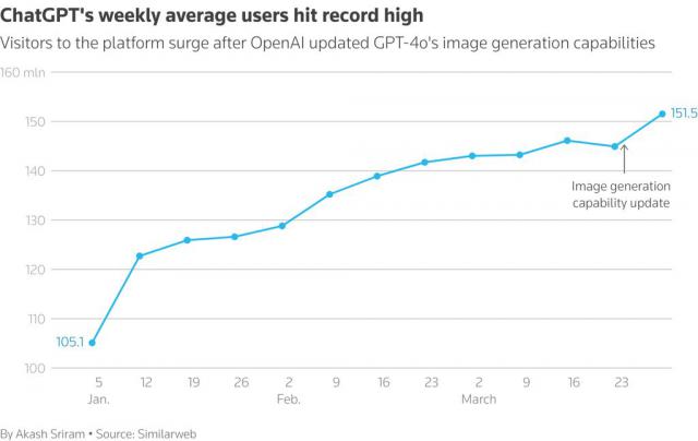 ChatGPT 爆红和新推出 4o 图像生成功能密切相关。该功能支持用户生成宫崎骏其人吉卜力风格的艺术图像,在社交媒体上迅速引发热潮。