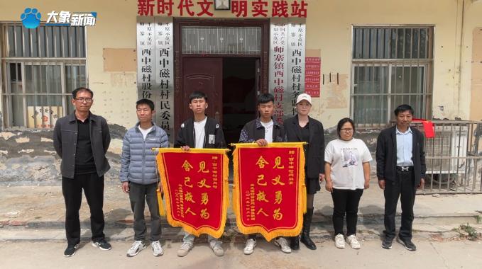 被救男孩的奶奶和姐姐也带着鲜花和果篮。