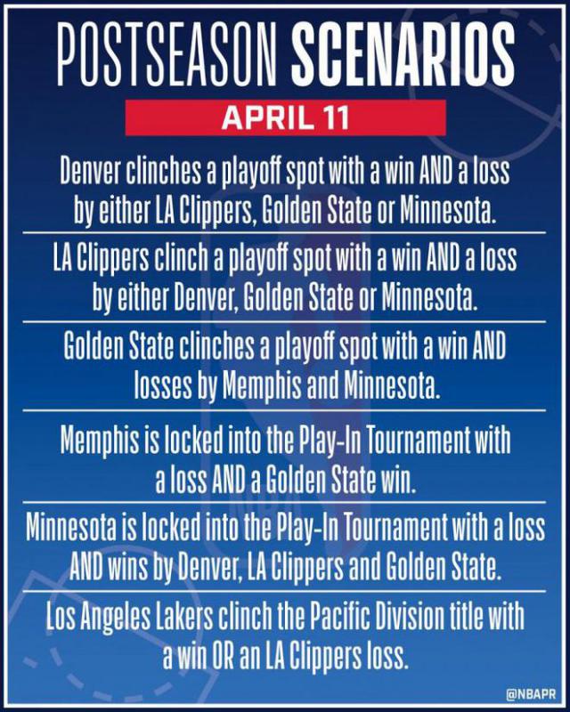 直播吧 4 月 12 日讯 常规赛结束了,NBA 西部多队晋升季后赛和锁定附加赛的官方分析。