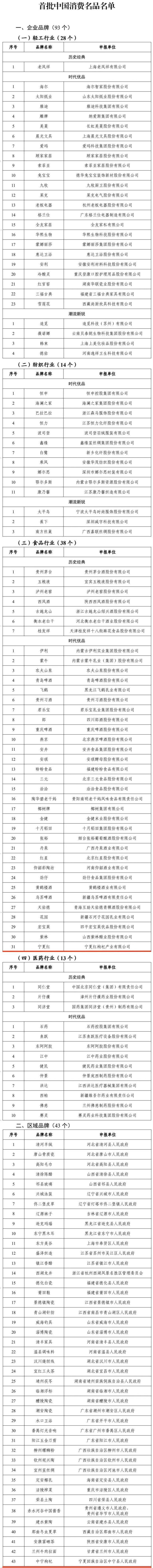 包括93个企业品牌,43个区域品牌。