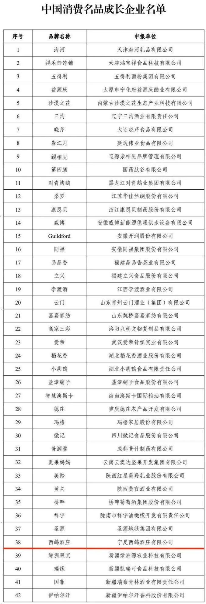 还公布了42家中国消费名品成长公司