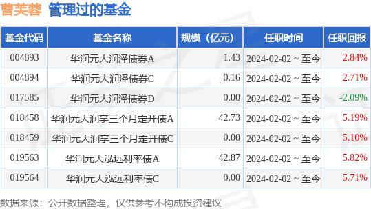 华润元大润丰纯债券A基金经理变更:增聘曹芙蓉为基金经理