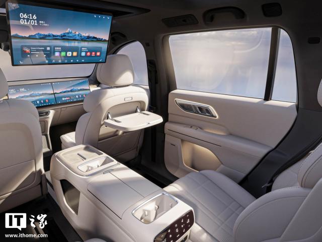 深蓝 S09 配置 2.5K 分辨率 15.6 英尺 15.6 英尺双连屏(亮度最高) 同时配备1000nit 43 英尺 AR-HUD 及后排 21.4 英尺 3K 分辨率娱乐屏幕(16:9 比例,支持 0-75 ° 可调整视角)。