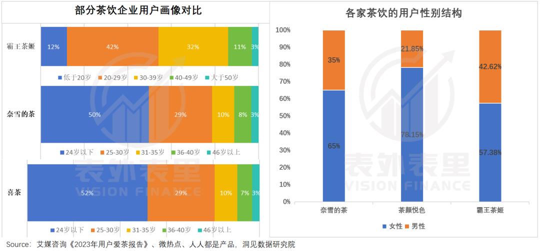与其它茶饮同行相比,霸王茶姬覆盖顾客的年龄明显更加均衡;性别方面,也主要推广一种“男女通杀”。