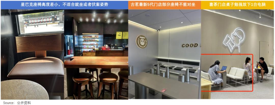 一刻也离不开工作的农民工,可能会有这样的个人感受:星巴克降低成本后,桌子变短,椅子变硬,坐着腰酸背痛;奶茶品牌优先考虑店铺效果,只留下等茶的位置“劝人快走”。