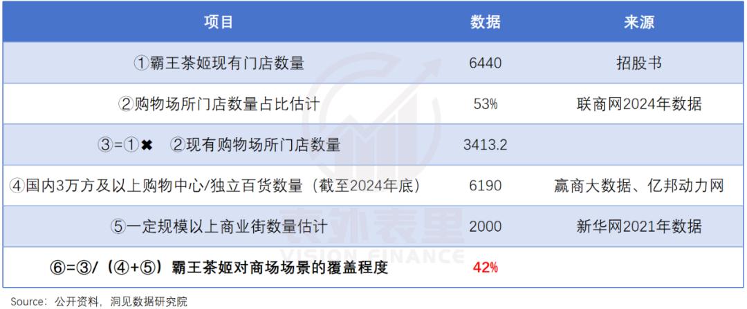 实际上,根据粗略的计算,现在霸王茶姬在商场场景中的覆盖率只有42%。