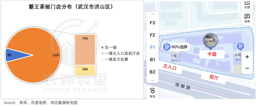 根据联商网的数据,全国约有53%的霸王茶姬门店位于购物中心,其中近80%位于一楼。