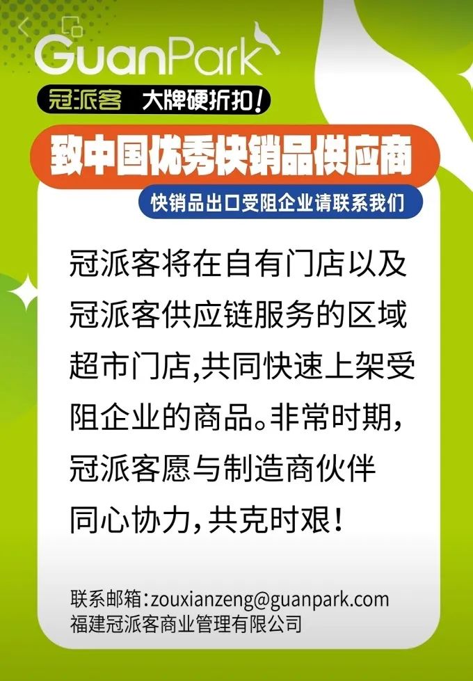4月11日,冠派客在官方视频号上发布了一封给中国优秀快销产品供应商的信,将在自有门店和冠派客供应链服务的区域超市门店迅速将公司的产品上架。