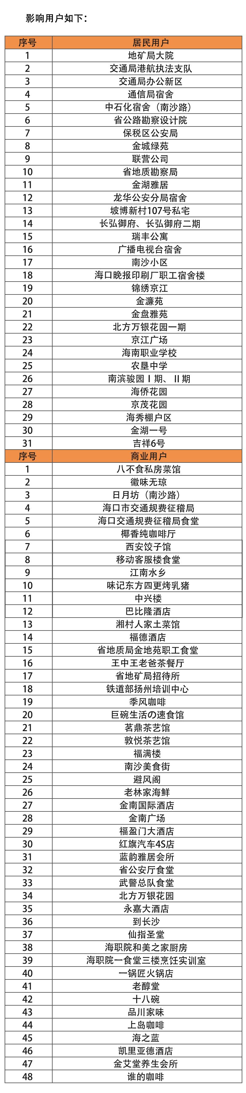 小布从海南民生管道燃气有限公司了解到,海口部分社区和商业客户将于4月13日21日在海口南沙路省公路勘察设计院(旧改社区)调压前停气,:00—14日5:00临时停气,请市民做好充分准备,关闭室内燃气阀,避免在恢复供气时发生泄漏。