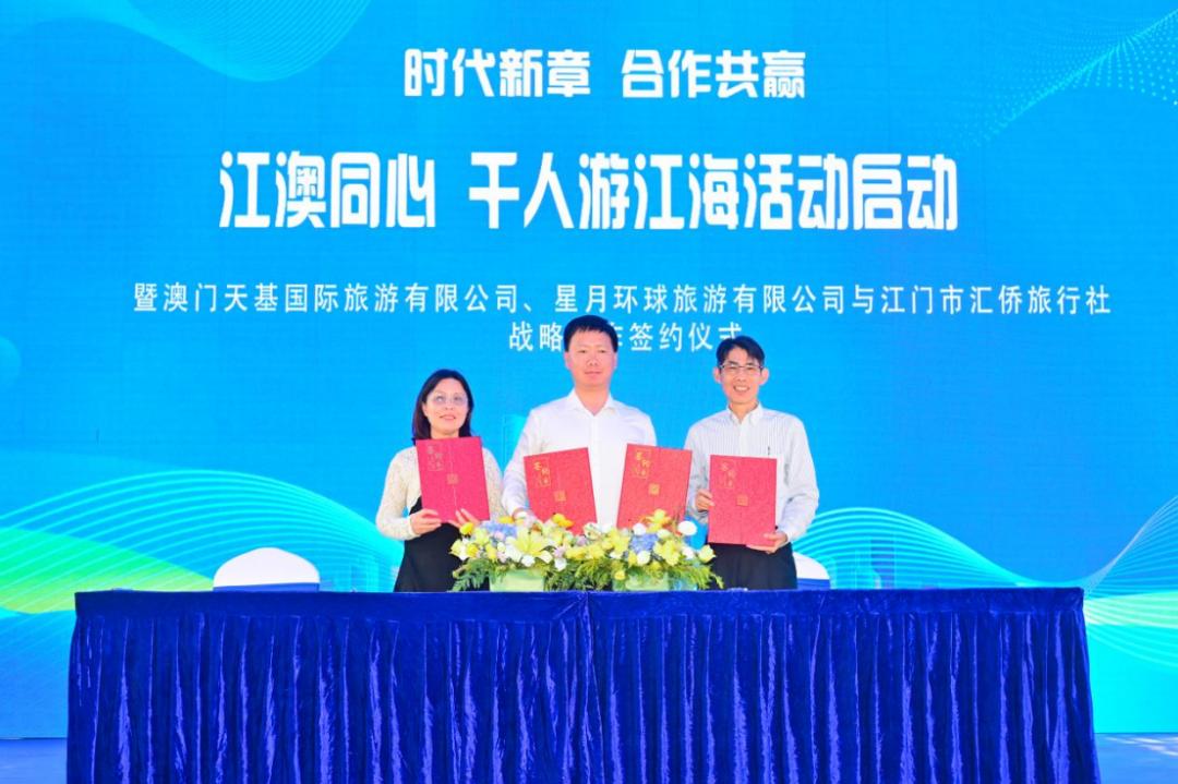 签约现场同时释放两个彩蛋:汇侨旅行社与澳门头部旅游企业达成跨境主题旅游合作,农行江海支行投入1亿元金融支持。