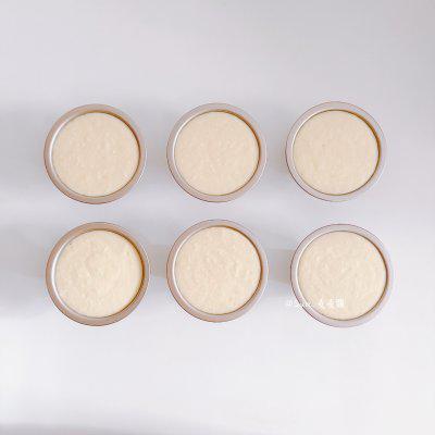 6、将面糊放入裱花袋中,挤入 6 一个蘑菇头麦芬蛋糕模具