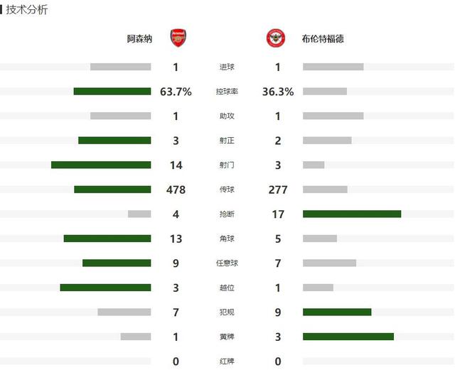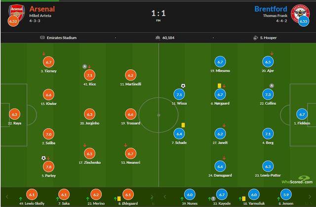 在这场比赛中,两队在上半场都没有取得任何成就。在下半场,赖斯独自骑行助攻托马斯打破了僵局。然而,萨维很快背对着球门侧钩追平了比分。 90 阿森纳主场打了几分钟, 1-1 与布伦特福德握手言和。