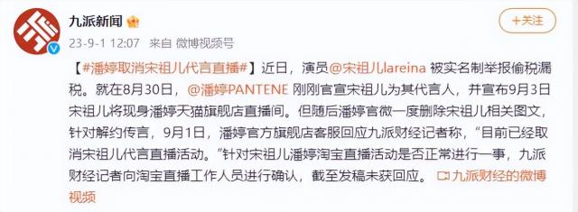 此外,就连当时刚刚正式宣布宋祖儿为其代言人的潘婷也删除了关于宋祖儿的图文,并取消了宋祖儿代言的直播。