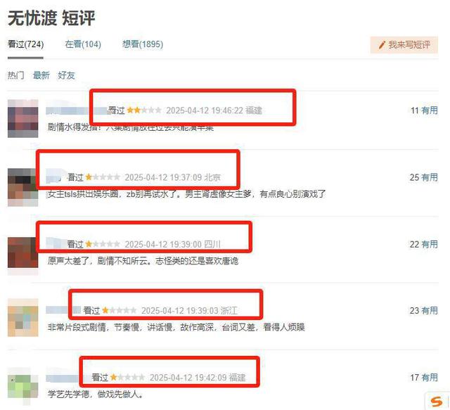 可话又说回来,热度高并不意味着该剧的质量高,当《无忧渡》开播后,立刻被一星评价刷屏。