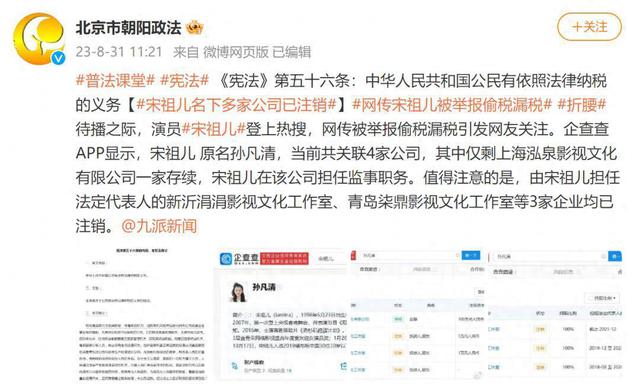 北京市朝阳市官方微博随后报道了宋祖儿疑似漏税事件,情况愈演愈烈。