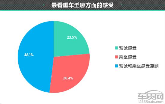 在衡量一款车的驾驶体验时,每个人都关注不同的部分。在这次调查中,重视“驾驶和乘坐体验兼顾”的车主比例相对较高,实现了 48.1%。还有 23.5% 和 28.4% 车主们各自重视“驾驶体验”和“乘坐体验”。