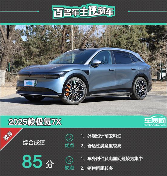 纯电动纯电动作为主要奢华和科技 SUV,极氪 7X 高通骁龙通过全系搭载。 8295 智能型驾驶舱芯片,双 Orin-X 智能驾驶芯片和激光雷达等十余种配备,满足了消费者对高品质、高性能、高智能家居的需求 SUV 的需要。2025年,根据本期“千名车主评新车”调查的车主反馈, 款极氪 7X 虽然在外观设计、乘坐空间、加速性能等方面表现不错,但也有一些消费者反映其车身配件、电器和销售问题较多。