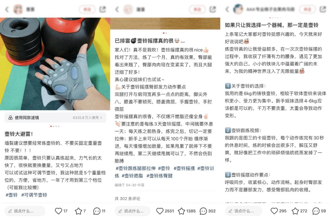 你可以在社交平台上看到大家分享的“壶铃摆动练习一个月效果”、选购壶铃跟练课程等各种主题的帖子。