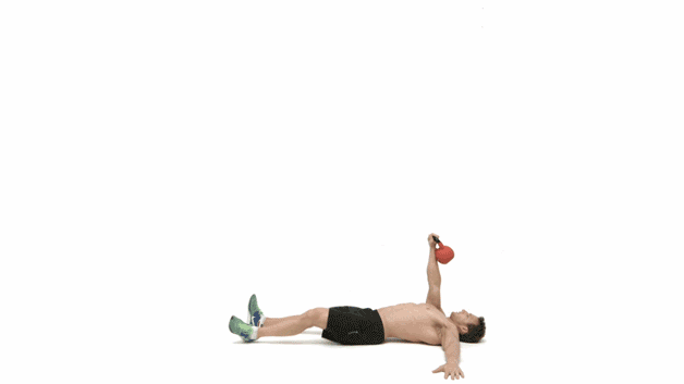 单手持壶铃,从平躺姿势开始,伸直手臂。